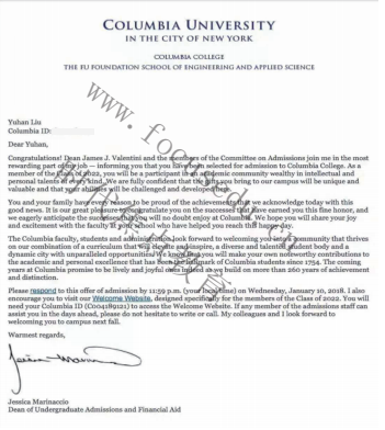 录取学校:哥伦比亚大学